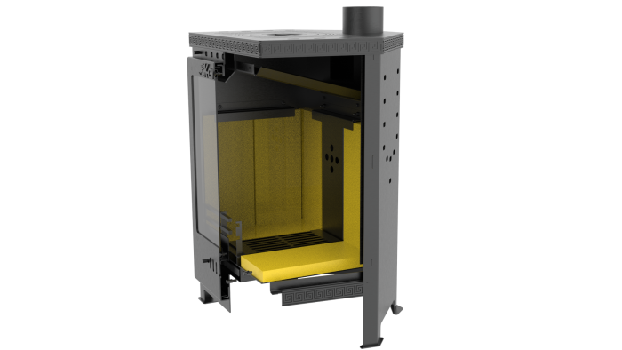 Печь-камин предназначена для установки в помещениях в целях создания необходимого температурного режима. Топка печи изготовлена из стали, футерована легкозаменяемым высококачественным шамотом.